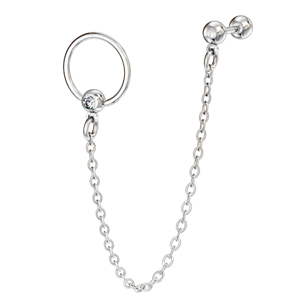 Украшение для хеликса с кольцом и цепочкой из хирургической стали 316L. Толщина кольца 1,2 мм. Диаметр 10 мм.