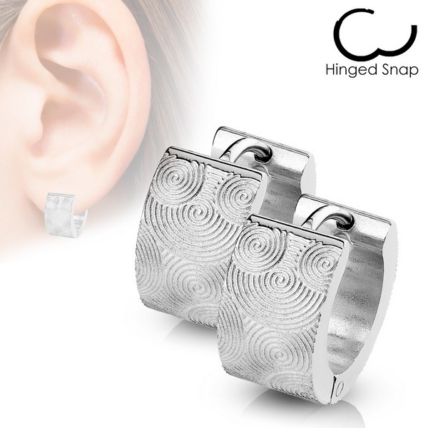 Серьги из хирургической стали 316L с лазерной гравировкой в виде спиралей.