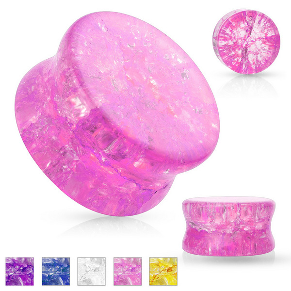 Плаги из акрила с бортами с имитацией растрескавшегося стекла.