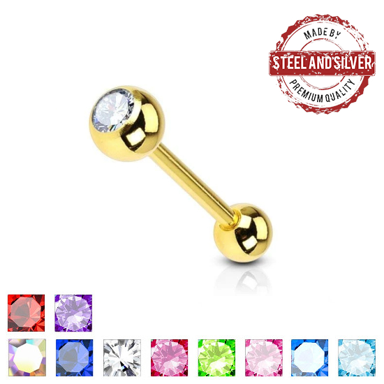 • Штанга для языка Steel and Silver с золотым покрытием