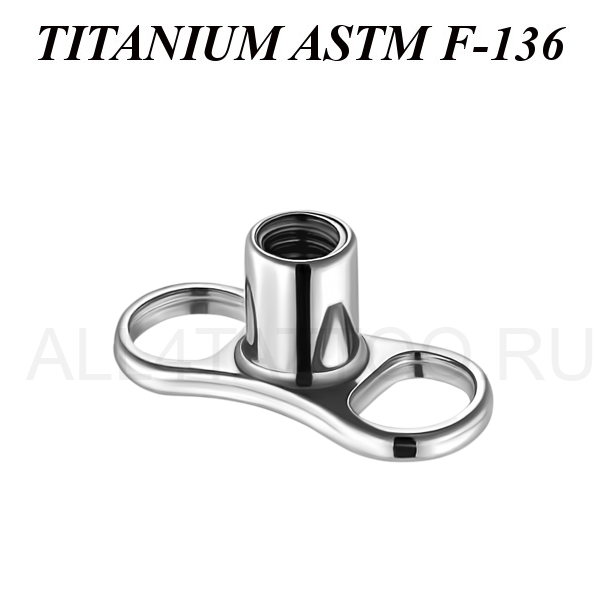 Мини якорь для микродермала из имплантационного титана ASTМ F-136  с двумя отверстиями. Толщина стойки микродермала 1.6мм, под накрутки с толщиной резьбы 1.2мм.