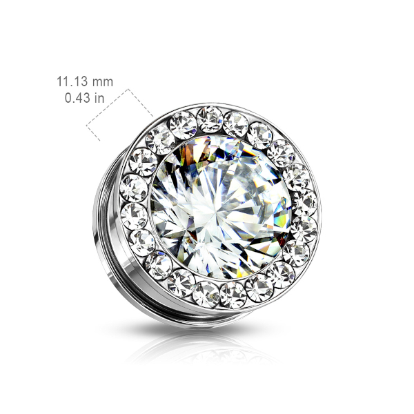 Тоннели из хирургической стали 316L с украшением в виде крупного страза, окруженного кристаллами меньшего размера.