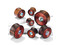 Плаги из падука, украшенные спиралью из медной проволоки и инкрустацией натурального перламутра.