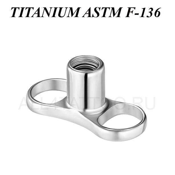 Мини якорь для микродермала из имплантационного титана ASTМ F-136 с двумя отверстиями. Толщина стойки микродермала 1.6мм, под накрутки с толщиной резьбы 1.2мм.