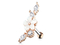 Микроштанга из хирургической стали 316L с декоративной частью из родированной латуни. Украшена комбинацией стразов и резного цветка из перламутра.