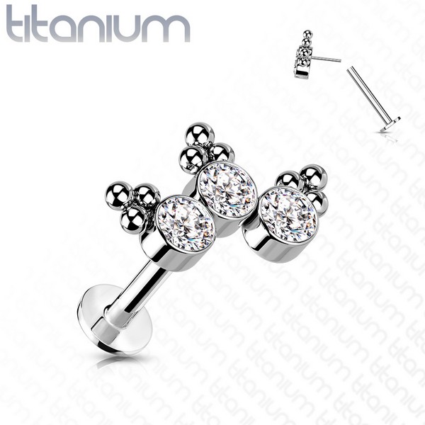 • Безрезьбовой лабрет из титана с кластером страз