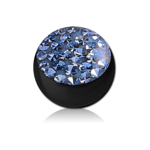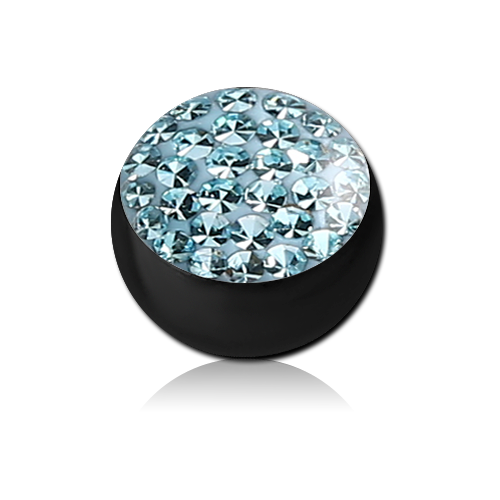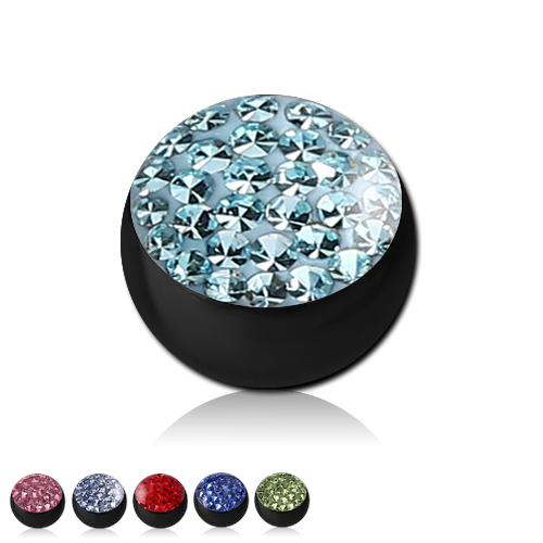 Шарик из хирургической стали 316L с чёрным PVD покрытием украшен стразами под прозрачным акрилом. Подходит для украшений толщиной 1.6мм с внешней резьбой.