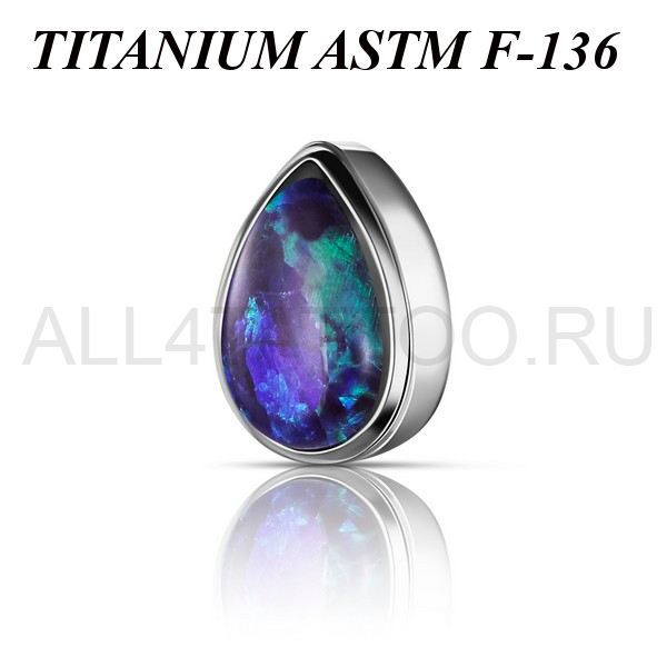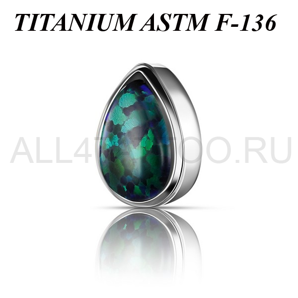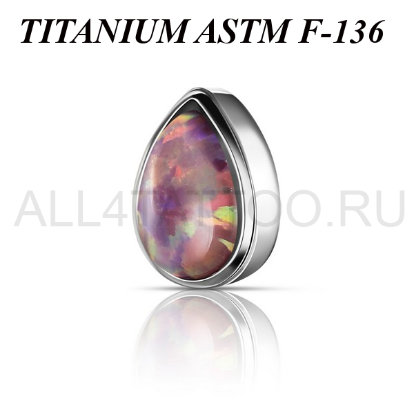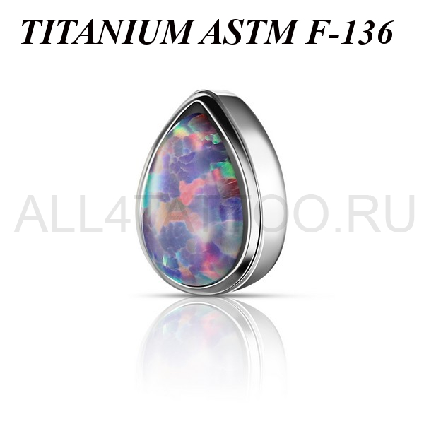 Накрутка из имплантационного титана 6Al-4V-Eli ASTM: F-136 в форме капли. Украшена лабораторным опалом. Размер декоративной части 3,5х5мм. Подходит для украшений с внутренней резьбой толщиной 1 и 1,2 мм.