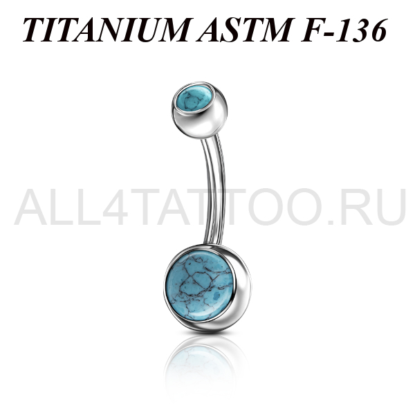 Банан из имплантационного титана 6Al-4V-Eli ASTM: F-136 с внутренней резьбой. Украшен кабошоном из искусственной бирюзы.