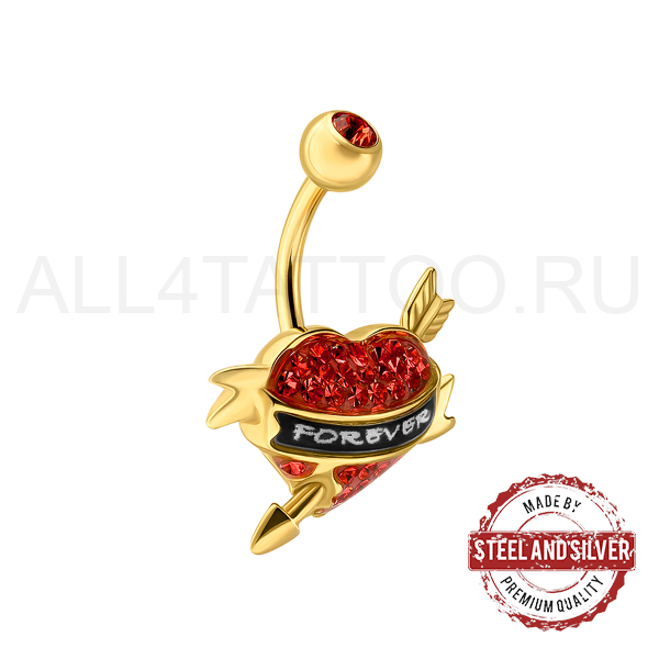Эффектный банан из хирургической стали 316L с фигурным сердцем, украшенным кристаллами Swarovski. Размер декоративной части: 19х17мм.