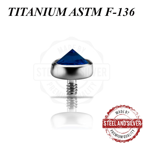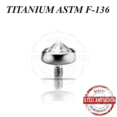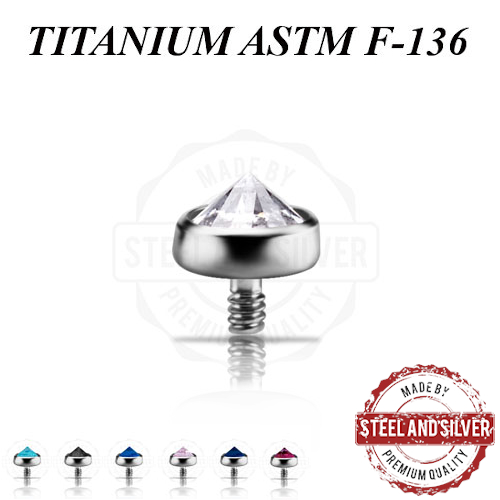 Накрутка из имплантационного титана ASTM F-136 украшена кристаллом Premium Cubic Zirconia. Подходит для украшений толщиной 1,6мм с внутренней резьбой диаметром 1,2мм.