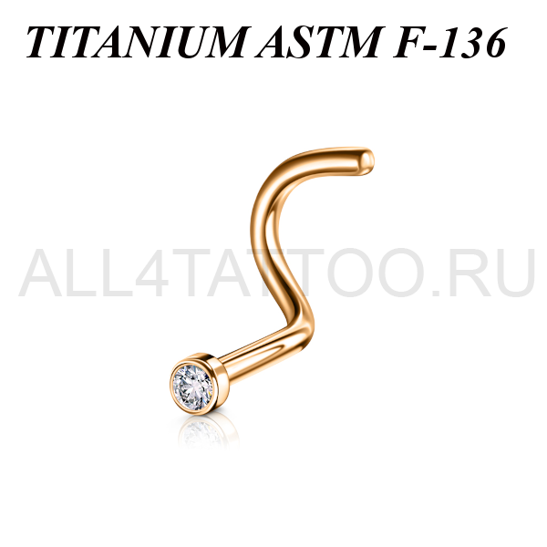 Нострил из имплантационного титана 6Al-4V-Eli ASTM: F-136 с золотым PVD покрытием. Украшен прозрачным фианитом диаметром 2мм.