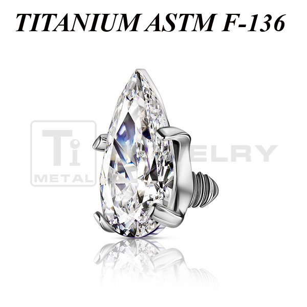Накрутка из имплантационного титана 6Al-4V-Eli ASTM: F-136 с прозрачным фианитом в форме капли. Размер накрутки: 2,4х4мм. Подходит для украшений с внутренней резьбой толщиной 1 и 1,2 мм.