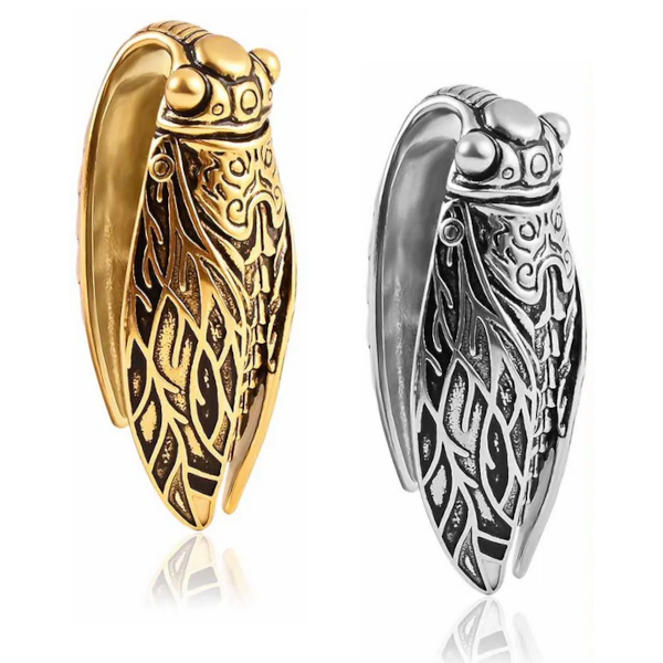 Фигурные подвесы из хирургической стали 316L в форме цикады. Представлены в двух вариантах: классические стальные и с золотым PVD покрытием.
