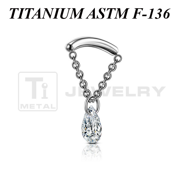 Накрутка из имплантационного титана 6Al-4V-Eli ASTM: F-136 с фианитом в форме капли на цепочке. Размер накрутки: 10х15,5мм.