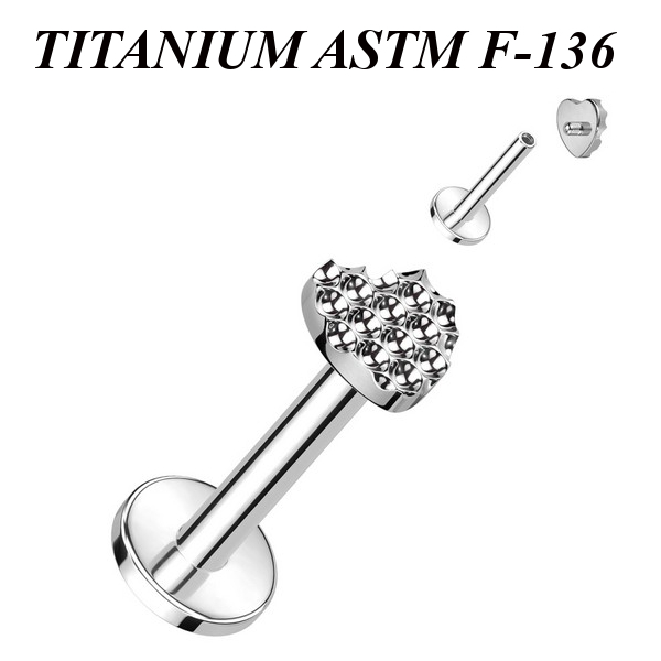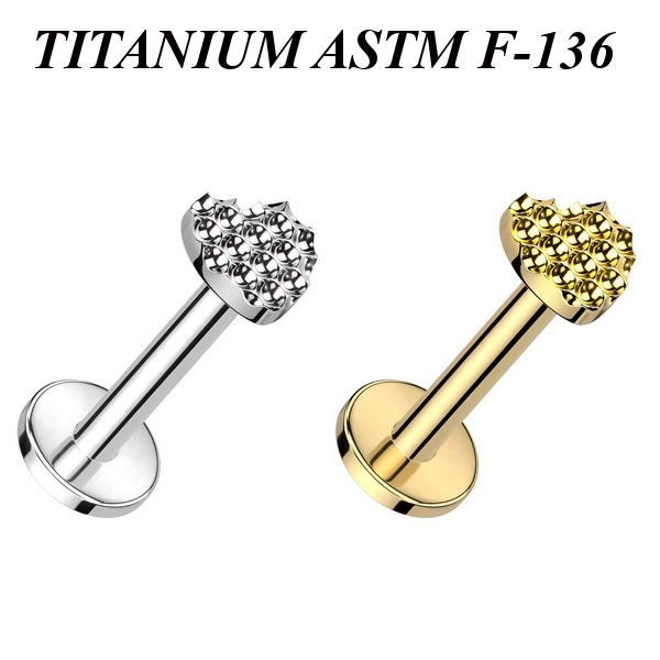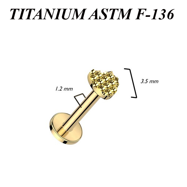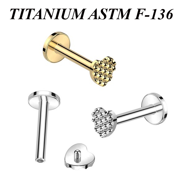 Лабрет с внутренней резьбой из имплантационного титана 6Al-4V-Eli ASTM: F-136. Представлен в двух вариантах: классический титановый и с золотым PVD покрытием