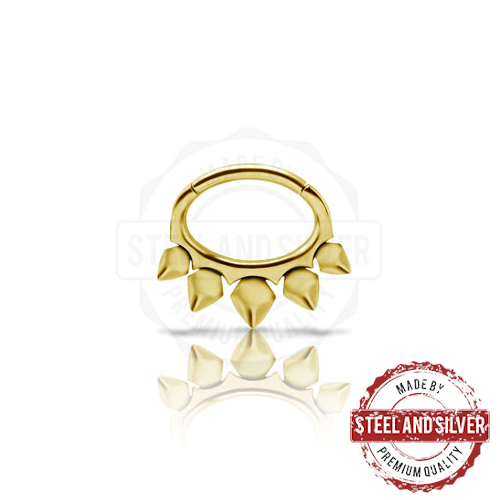 Овальный кликер из хирургической стали 316L. Представлен в двух вариантах: классический стальной и с золотым 24х каратным PVD покрытием.