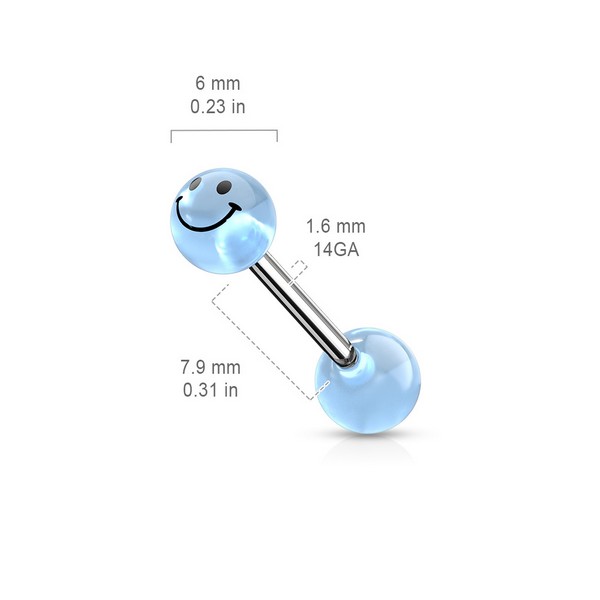 Штанга из хирургической стали 316L с акриловыми шариками светящимися в ультрафиолете.